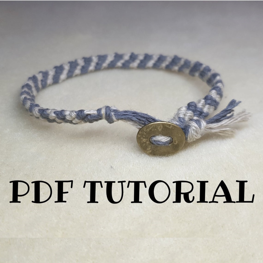 8 page PDF tutorial complete with pictures and step by step instructions for making a candy stripe design macrame bracelet.